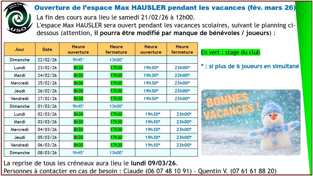Ouverture pendant les vacances février - mars 2026